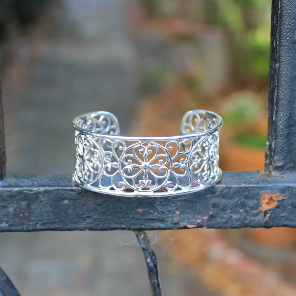 Beautiful scroll designs reminiscent of the ironwork found in historic churches, chapels, and cathedrals have inspired this intricate filigree jewelry.